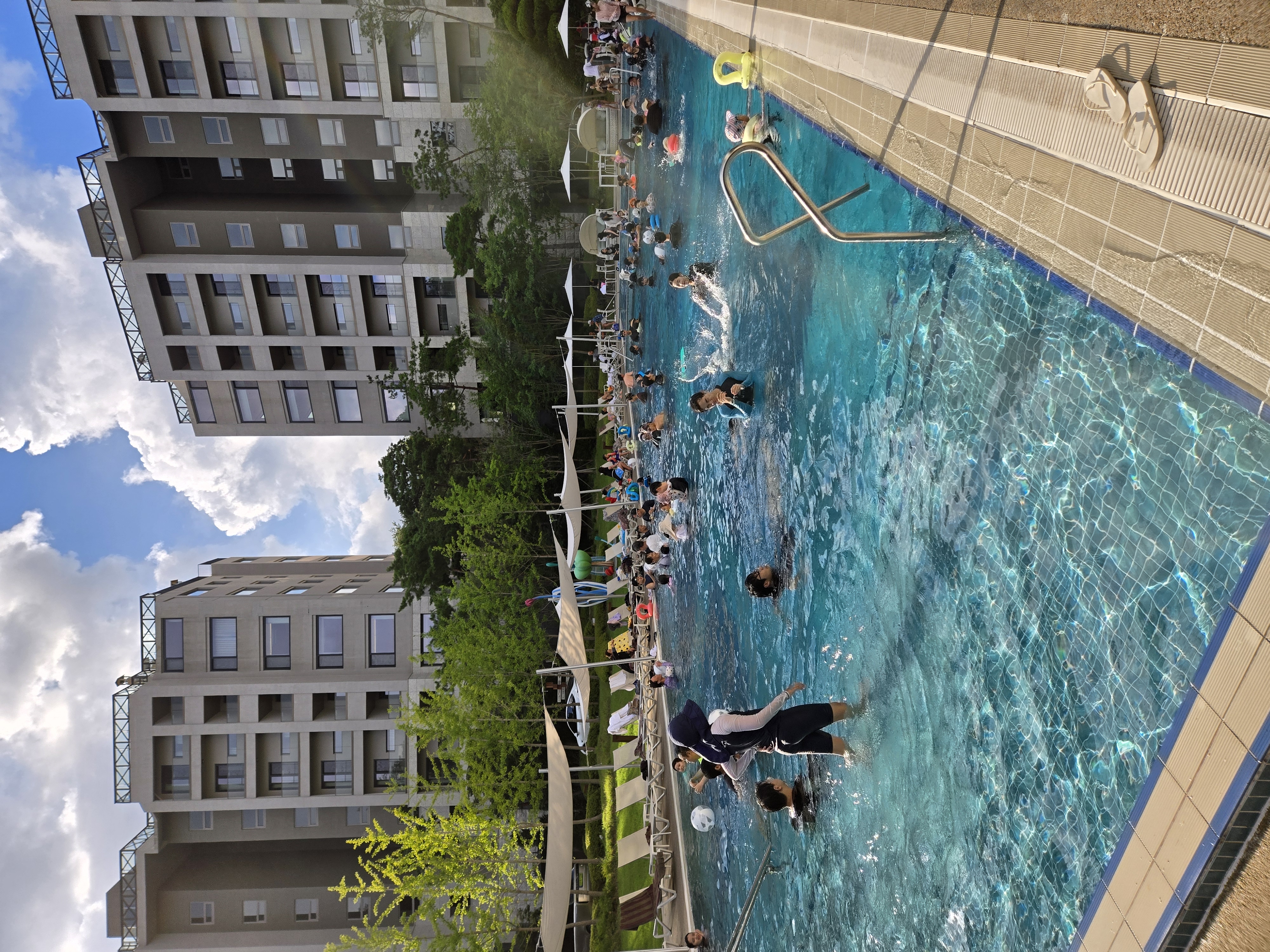 위 사진은 누구나 이용 가능한 라운드풀입니다. 가족 단위 손님이 많아 아이들과 놀기엔 좋지만, 조용히 수영하기엔 조금 복잡할 수 있습니다.