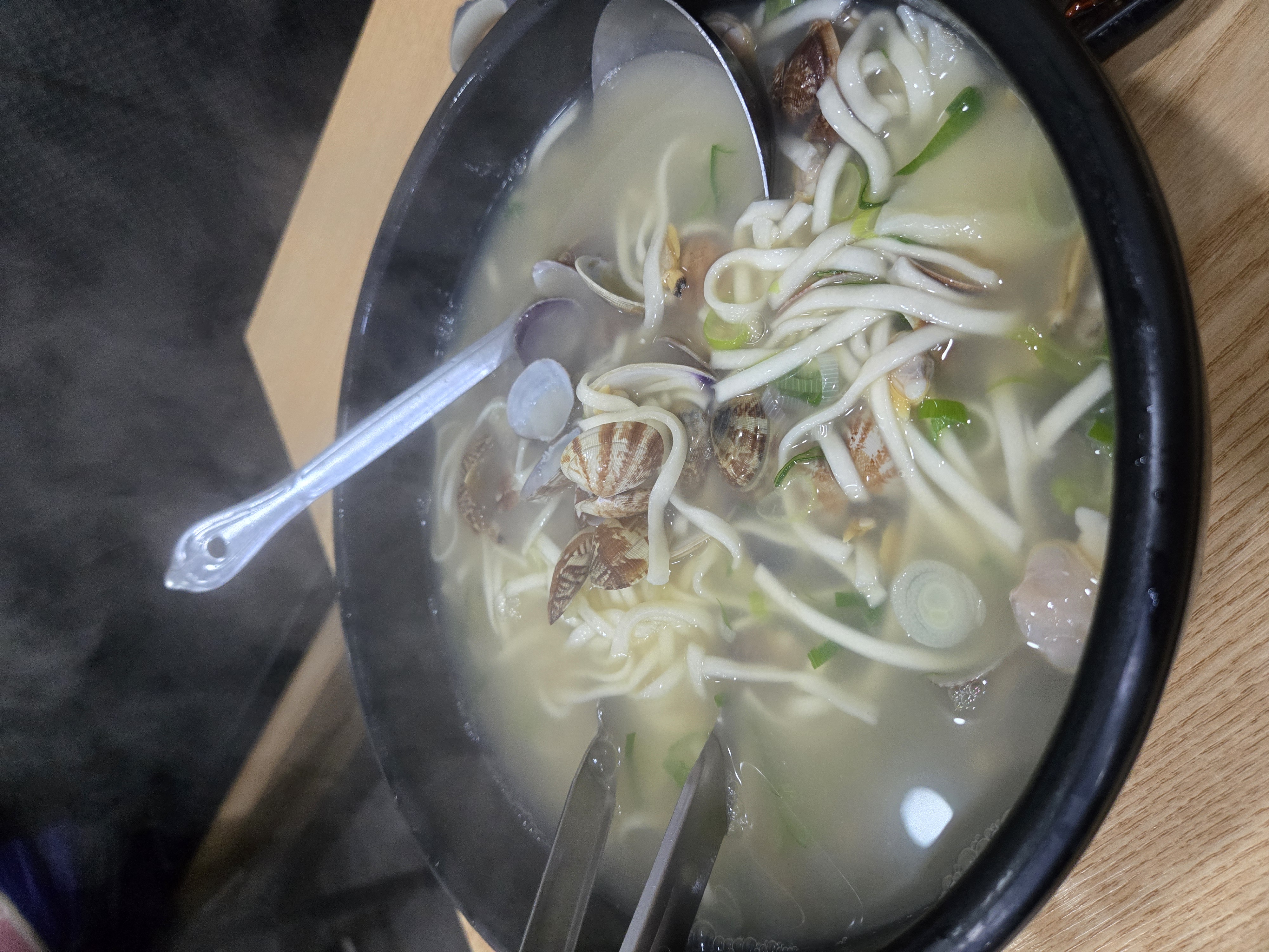 저녁 식사는 서천으로 넘어와 바지락 칼국수를 먹었습니다. 이 집의 하이라이트는 바로 수육 서비스! 푸짐한 양과 따뜻한 국물 덕분에 저녁 식사까지 완벽하게 마무리했습니다.