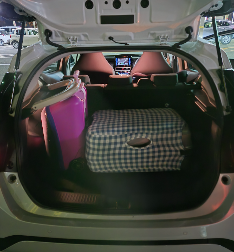1. 트렁크 공간 (가족 여행 필수): 소형차라 걱정했지만, 24인치 캐리어, 기내용 캐리어 2개를 싣고도