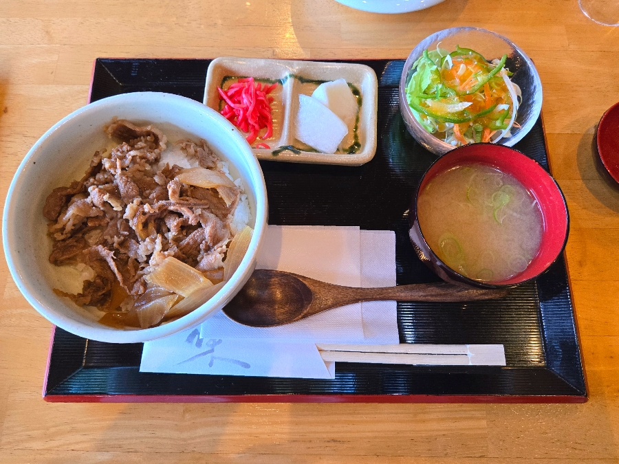 주요 메뉴: 저는 불고기 덮밥(1,210엔)을, 아이는 치즈 햄버거(1,180엔)를 주문했습니다. 아이와 함께 먹을 수 있는 메뉴 구성이라 좋았습니다.