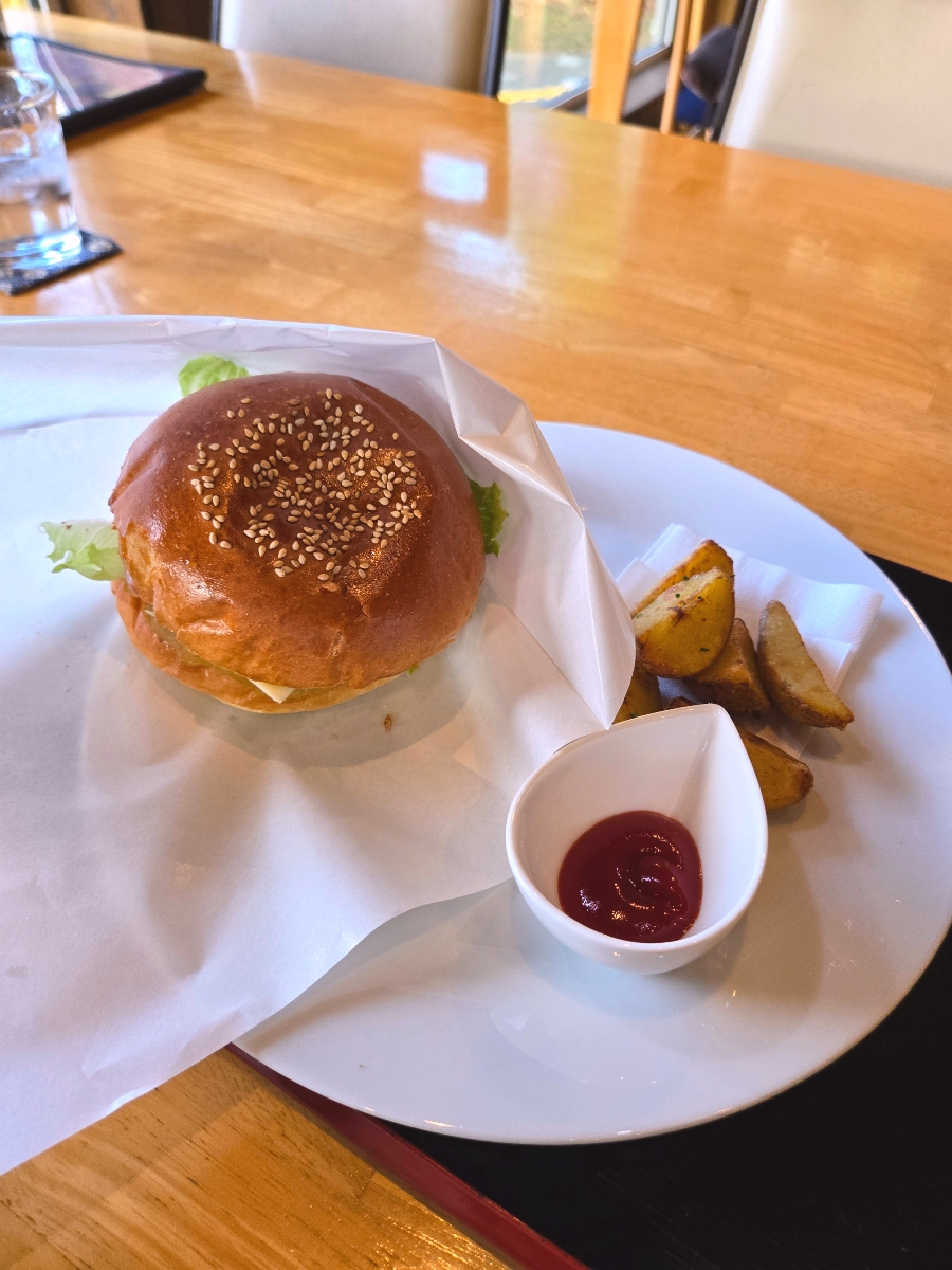 창밖 정원이 보이는 명당자리! 아이가 좋아했던 치즈 햄버거와 불고기 덮밥. 가격 대비 만족스러운 점심 식사였습니다.