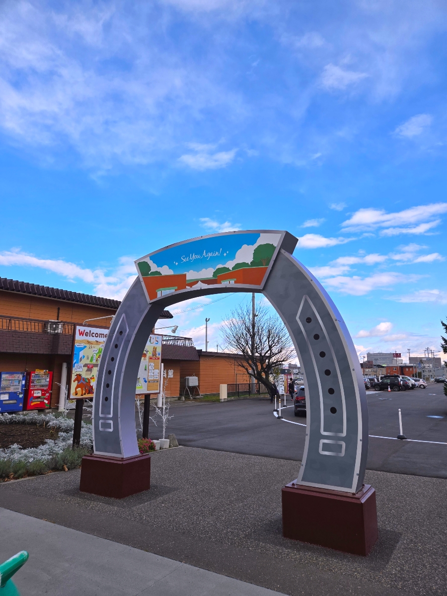 포토존: 야외에는 'See you again'이라는 문구가 새겨진 대형 말발굽 조형물과 오비히로를 상징하는 OBIHIRO 조형물이 있어 포토존으로 완벽했습니다.