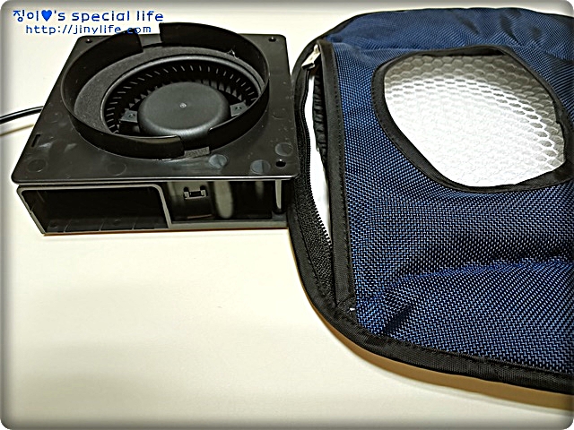 지퍼를 열고 팬을 분리한 모습입니다.