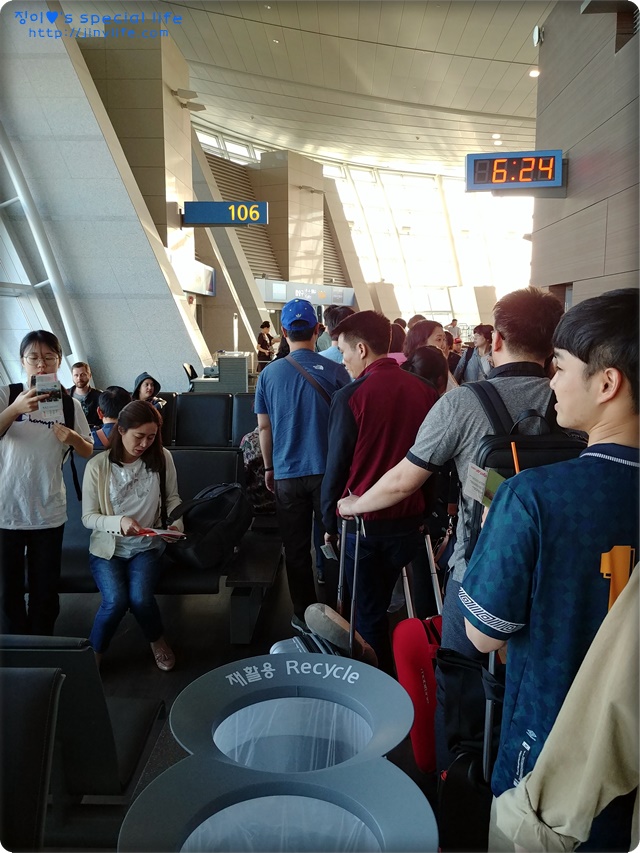 6시 25분 출발 시간인데 아직도 줄서서 기다리는...