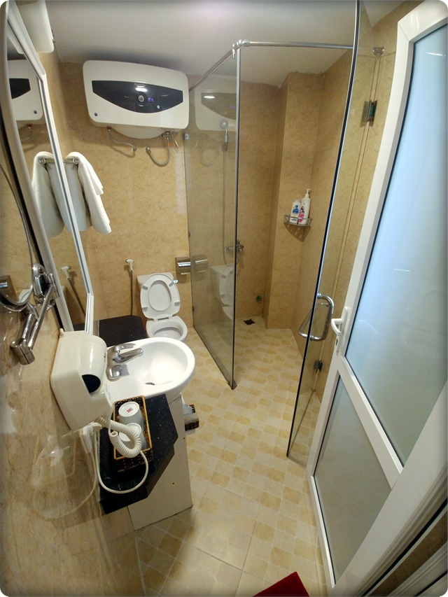 창문으로 햇살이 들어와서 활짝 열어 봤는데 트여 있긴 하지만 옆 건물 옥상이랑 좀 지저분해서 닫아뒀다. 룸 컨디션은 괜찮고 벌레나 도마뱀은 보이지 않았다. 화장실은 크기, 수압, 온수, 배수 등등 전반적으로 양호한 수준이다. 이제 짐 풀고 바로 점심 먹으러 나왔다.