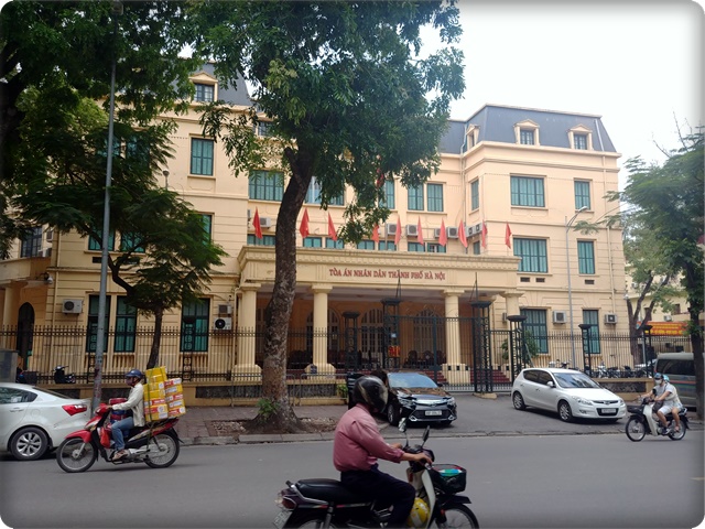 하노이 서점 골목 나와서 길을 건너고 나서 보였던 호텔처럼 생긴 이쁜 건물. 무선 건물인지 궁금해서 사진만 찍어두고 인터넷으로 검색해보니, 하노이시 인민 법원 건물이었다.