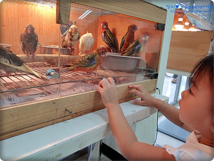 들어가자마자 이쁜 앵무새들이 반겨줍니다.