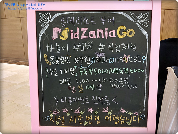 부여 롯데리조트 1층 로비로 들어오면 바로 앞에 안내문이 있으며,