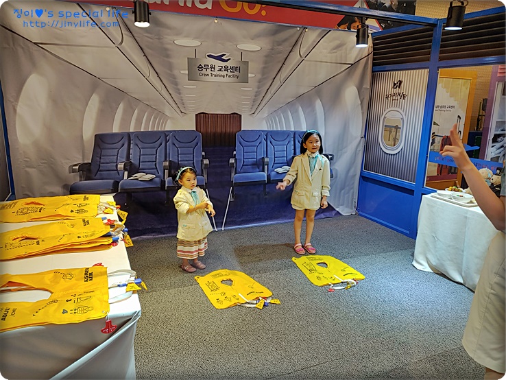 스튜어디스 언니가 이쁜 옷을 입혀 줍니다.