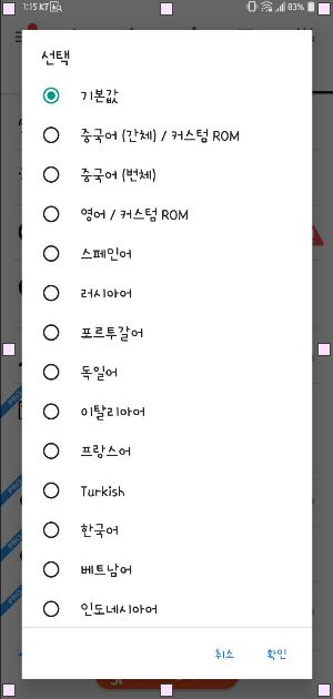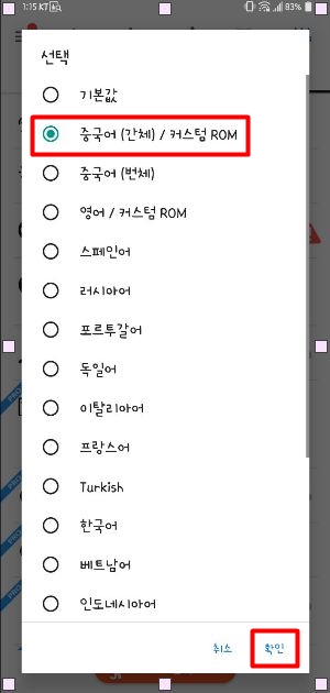 기본값을 "중국어(간체) /커스텀 ROM" 으로