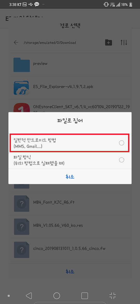 다운로드 받아 놓은 폴더로 이동 -> 펌웨어 파일 선택