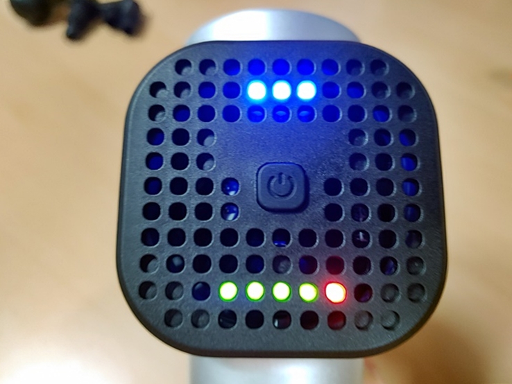 마사지 건 뒷면에 LED 불이 들어옵니다.