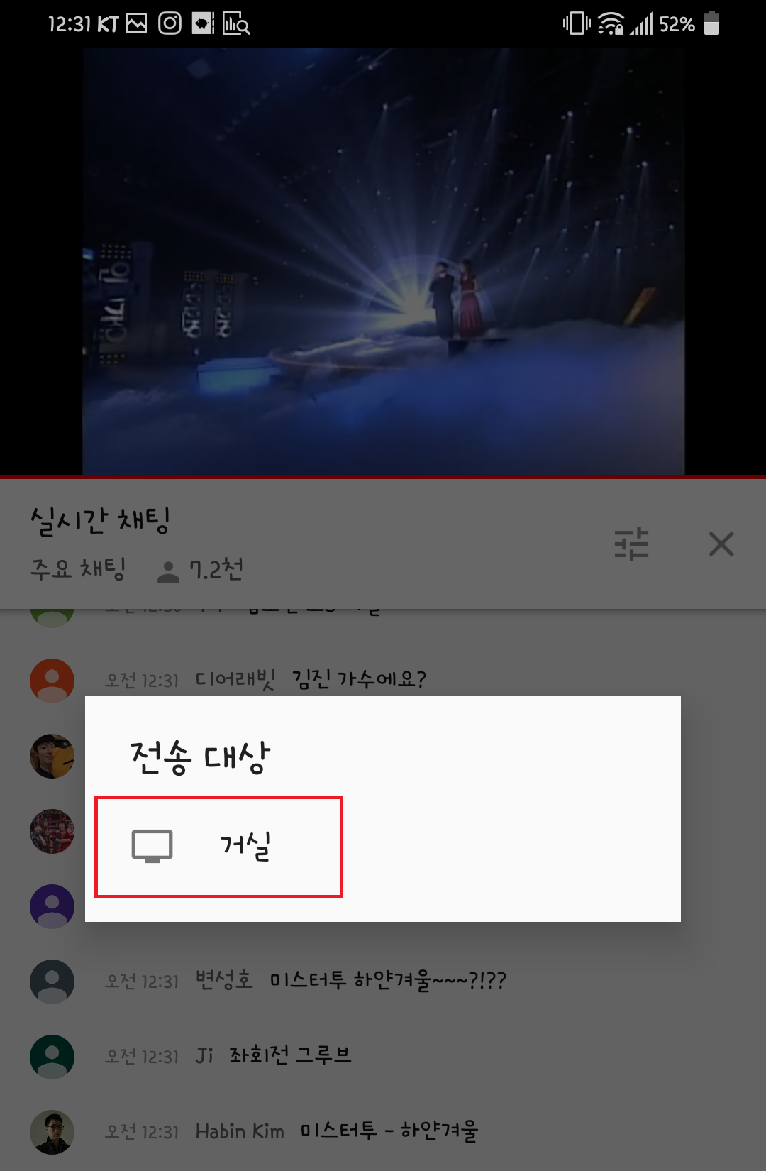 전송 대상 -> 구글 홈허브 기기를 선택합니다.