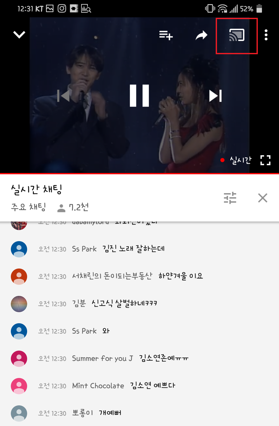 화면 보내기 (빨간 박스) 아이콘을 누르고