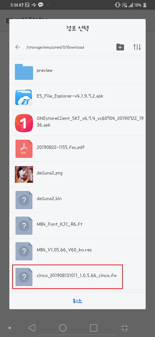 다운로드 받아 놓은 폴더로 이동 -> 펌웨어 파일 선택