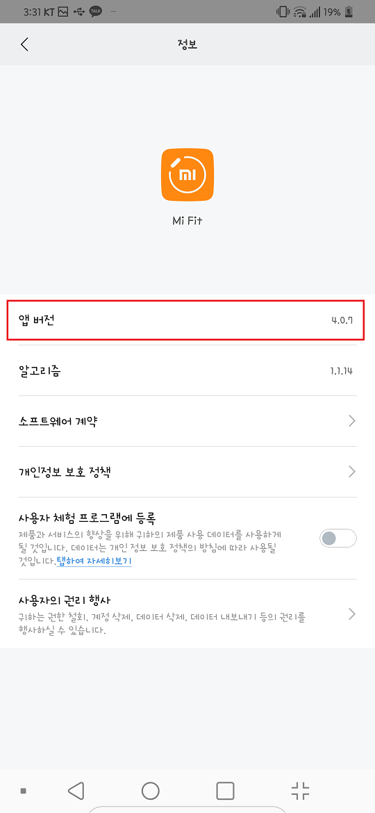 미핏 다운그레이드 v4.0.8 -> v4.0.7