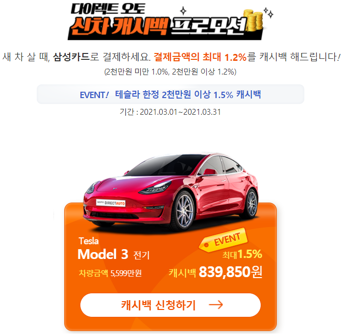 3월달 최대 캐쉬백 주는 업체는 삼성카드 2.4% 였다 (신규는 2.3%)