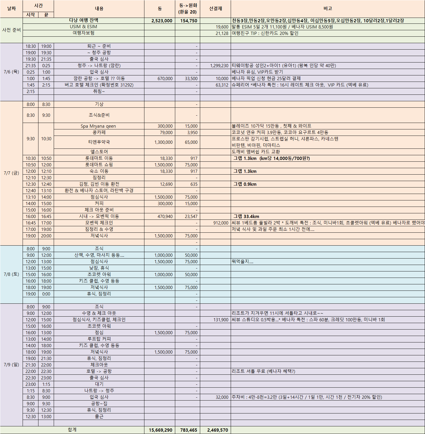 일정, 리조트, 호텔 일정 짜기에는 시간이 너무 부족해서 대략적으로만 짜기로 결정...