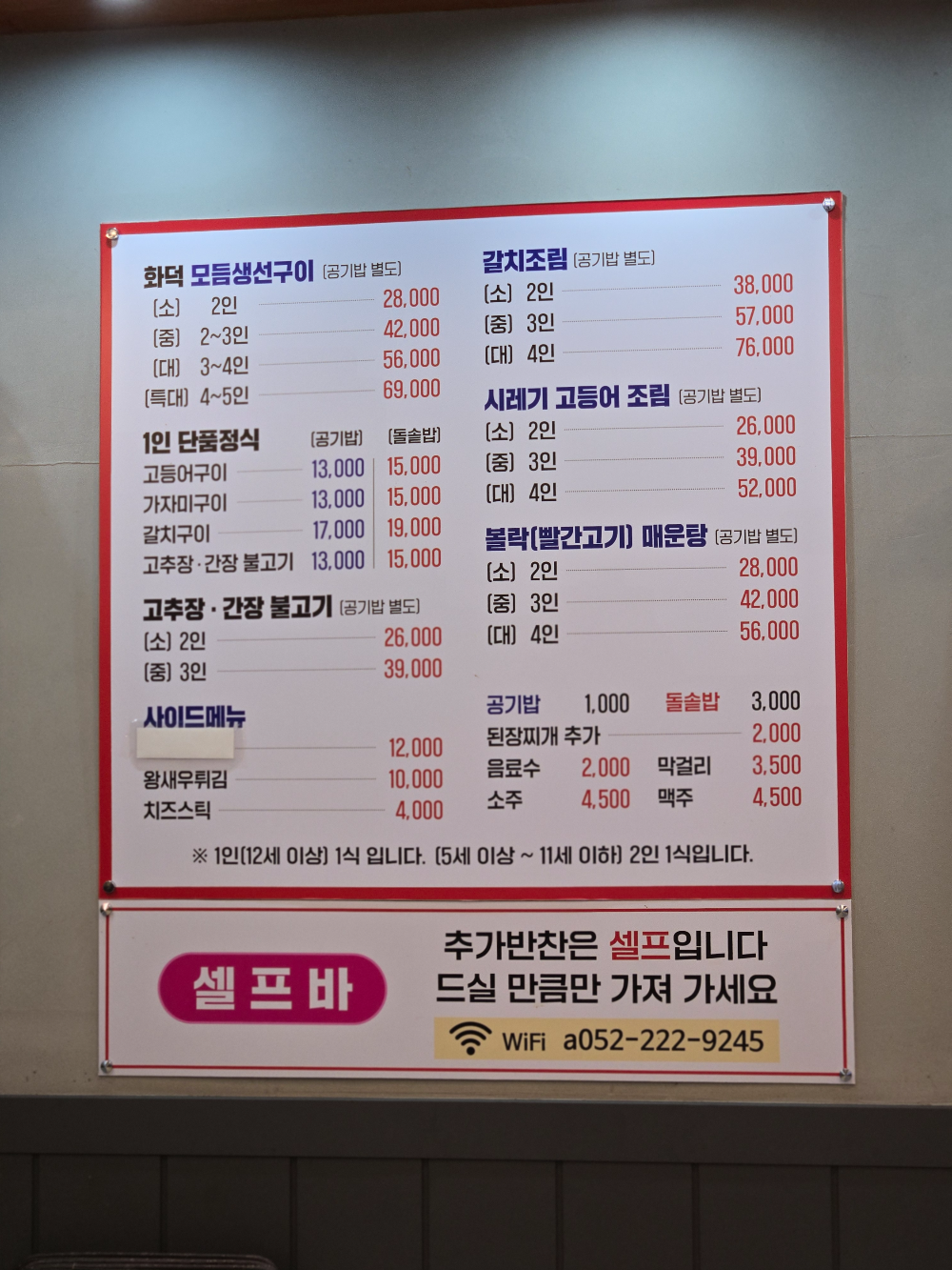 메뉴판은 구이류부터 찌개, 세트 구성까지 다양했는데