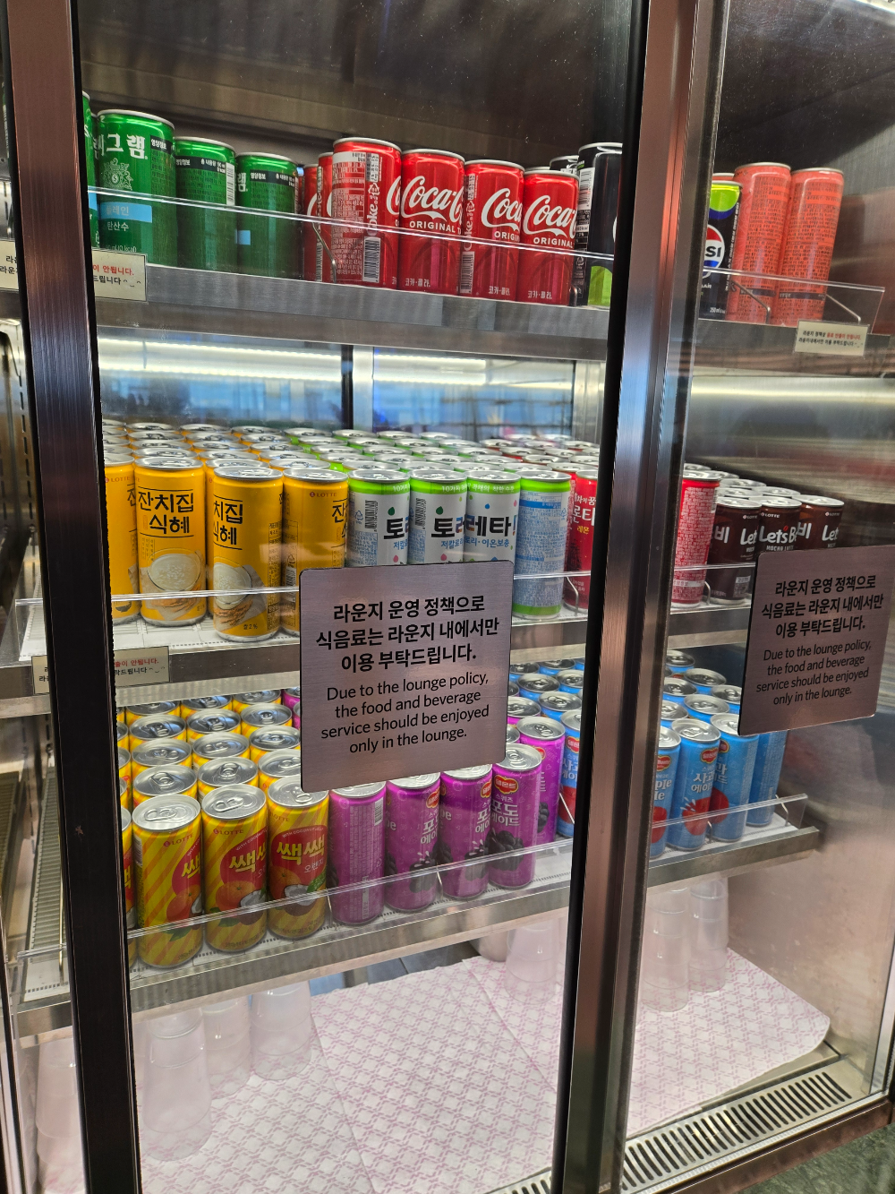 요즘 커피 한 잔도 비싼데, 공짜로 두 잔 들고 게이트 앞자리로 이동~
