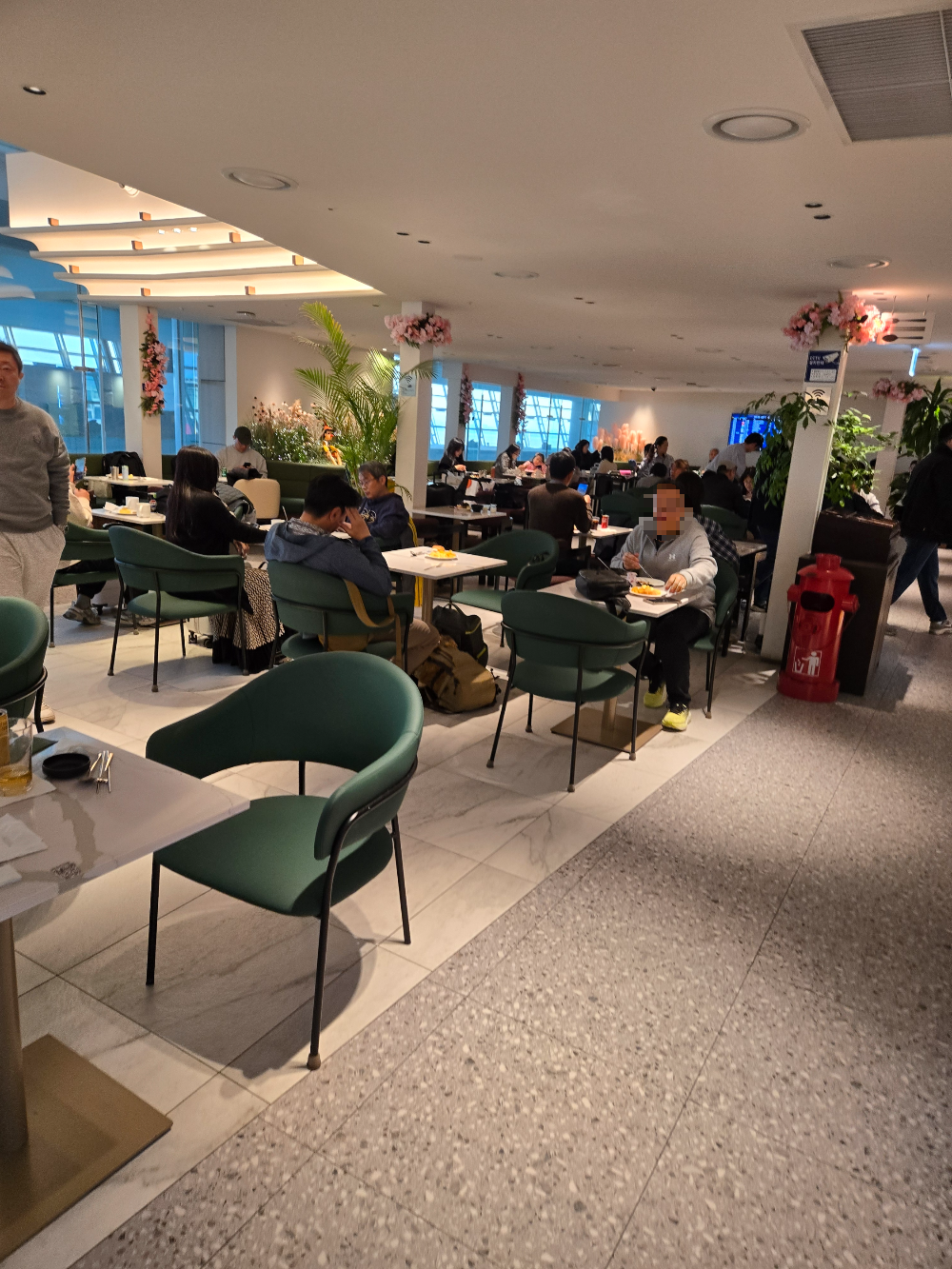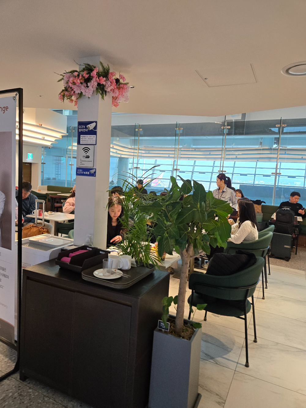 라운지에서 밥 먹고 → 커피 들고 게이트까지 이동 → 여유 있게 앉아서 기다리기