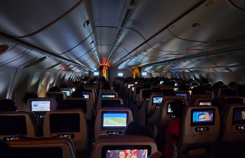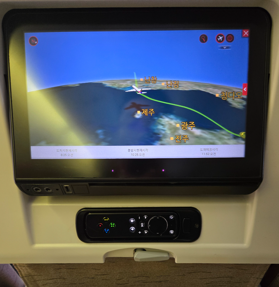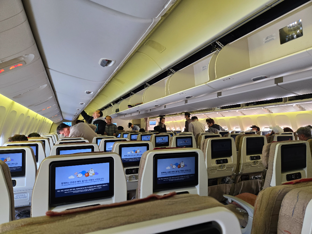 비행기 내부, 좌석 공간, 콘센트 위치, 기내식 구성, 모니터 콘텐츠, 착륙 직전까지의 준비,