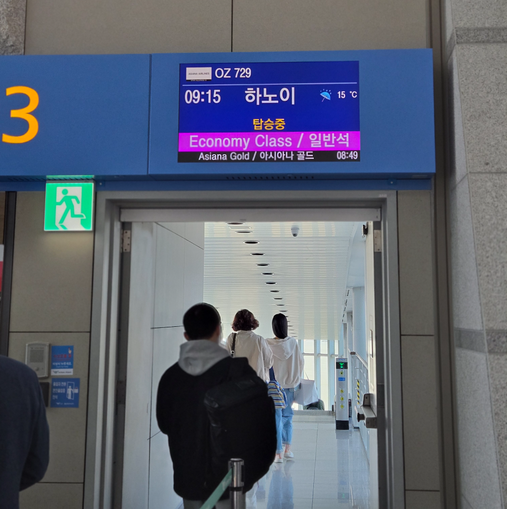 이번에 이용한 항공편은 "아시아나 항공의 하노이행 OZ 729 노선"